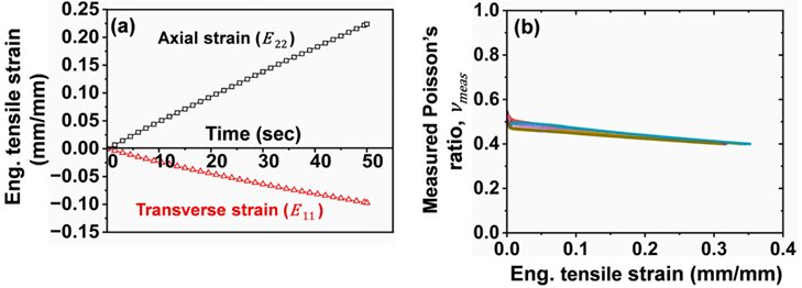 相關論文以“Measurement of axial and shear mechanical response of PDMS elastomers and determination of Poisson’s ratio using digital image correlation"為題發表在《Polymer Testing》。